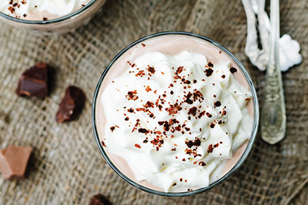 Who doesn’t like a good chocolate mousse? Light yet delicious, this classic can be made in minutes with just a few ingredients – and it’s perfect for easy entertaining after a long, luxurious meal. Top with whipped cream and chocolate shavings or, for a pretty spectacle, with summer berries and fresh mint leaves.