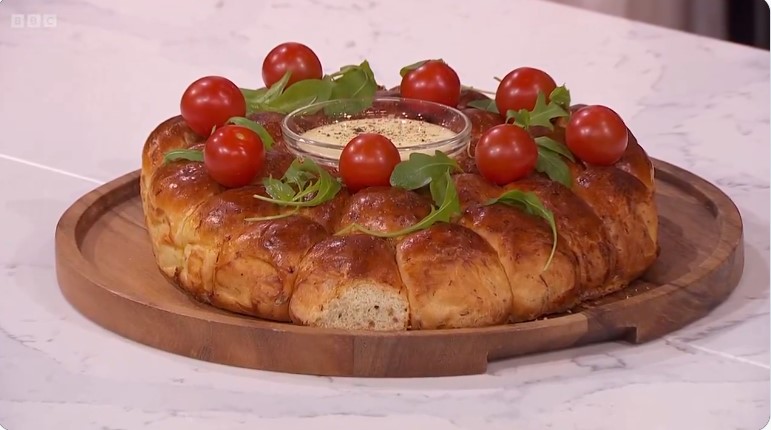 Chef Anna Haugh is whipping up a feast for the whole family. She's serving up her show- stopping garlicky tear and share Christmas wreath, packed with ham and herbs, and served with a cheesy fondue dip. pic.twitter.com/MgGjRD6K86