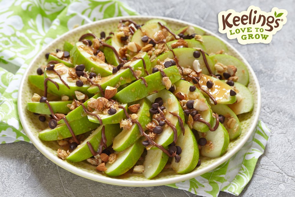 Feeling hungry? Chop up some apples add some peanut butter, chocolate chips, granola and almonds for a super snack. #Keelings