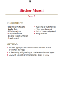 This recipe comes from the original Swiss Bircher muesli, where porridge oats are soaked in a little water, then sweetened with delicious seasonal or dried fruit, and sometimes nuts and seeds too. Strawberries and raspberries work particularly well in this muesli recipe, as does grated apple, to which you could also add a smidgen of ground cinnamon.